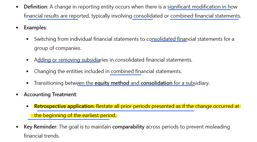 How is a change in accounting principle inseparable from a change in estimate reported, and why is separate disclosure incorrect
