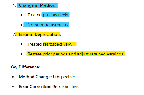 How are changes in depreciation method and depreciation errors treated differently under U.S. GAAP?