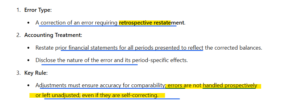 How are prior-period accounting errors corrected when comparative financial statements are issued or not issued?
