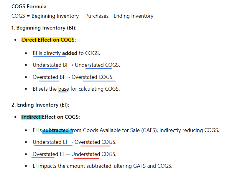 How do beginning and ending inventory errors directly or indirectly affect Cost of Goods Sold (COGS)