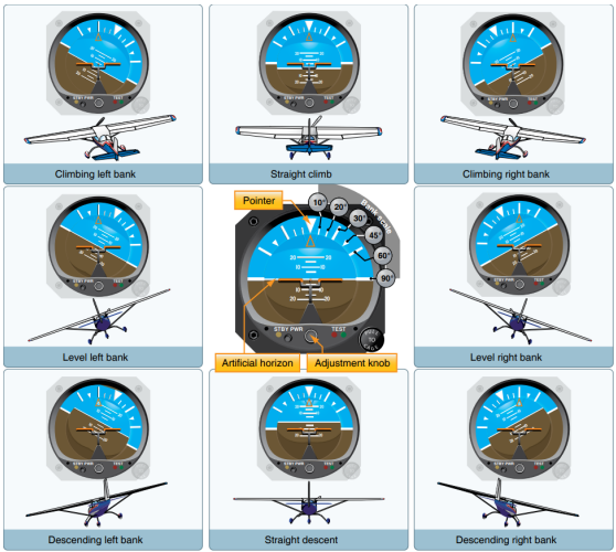 Positions of an A/C vs Attitude Indicator diagram