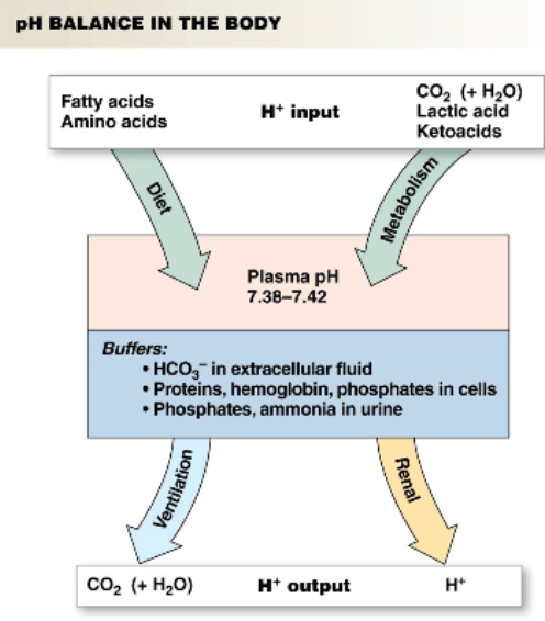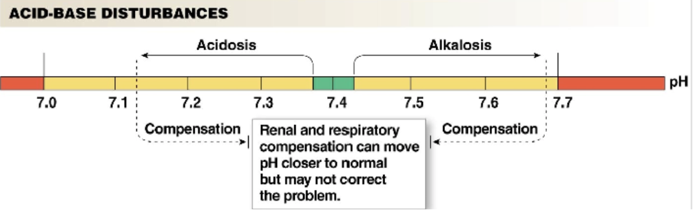 -by the time an acid-base disturbance causes a change in plasma pH, the body’s buffers are ineffective leaving respiratory and renal compensation to alleviate the change in pH