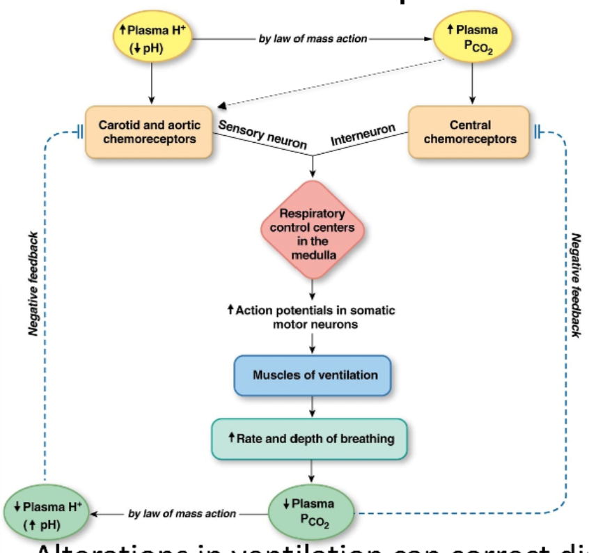 -alterations in ventilation can correct disturbances in acid-base balance as well as cause them