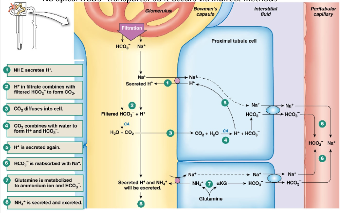 how does the proximal tubule secrete H and reabsorb HCO3-?