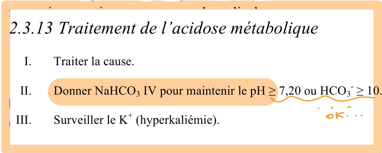 1- tx la cause qui génère augmentation des HCO3- (vomissements, diurétiques)