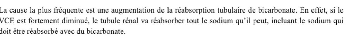 2- Corriger les facteurs qui empêchent le rein d’uriner le bicarbonate excédentaire ( corriger VCE, corrigerhypokaliémie )