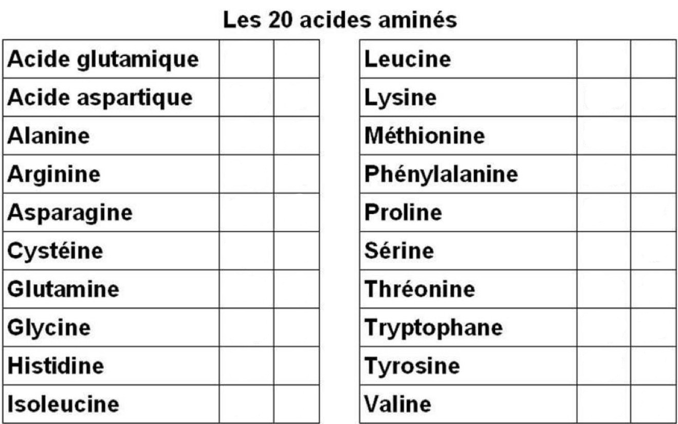 Les acides aminés protéinogéniques = les modules dont sont faits les protéines