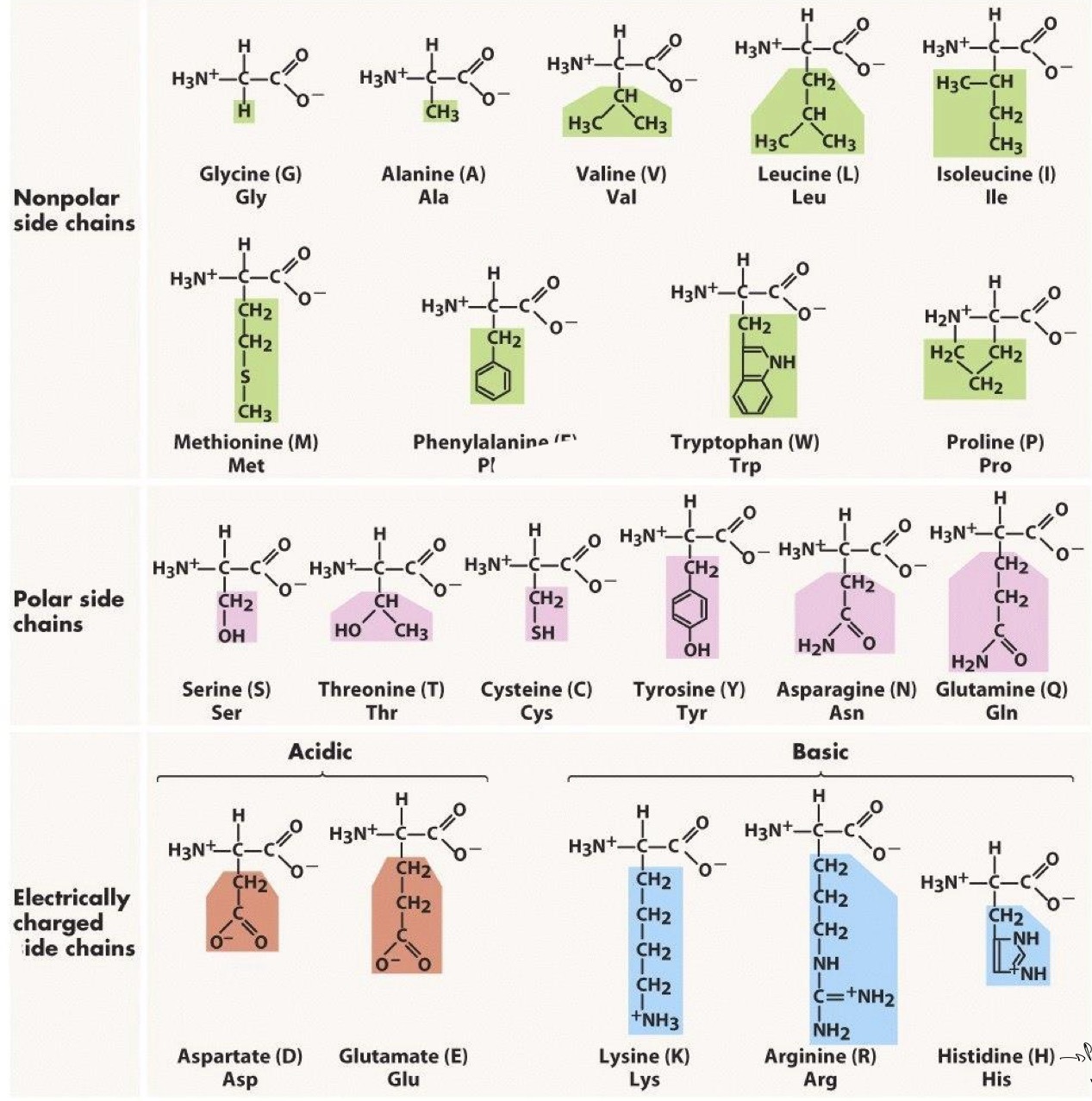 Nommer les catégories ainsi que les acides aminés