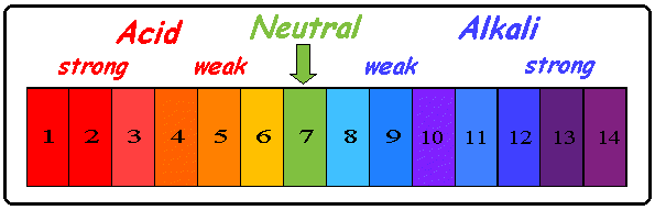 A pH of 0 is a strong acid, a pH of 14 is a strong alkali. A pH of 7 is neutral