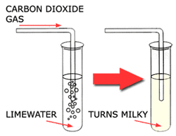 To test for this reaction you bubble the gas created through limewater. If carbon dioxide is produced the limewater goes cloudy