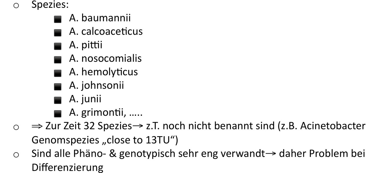 Welche Spezies gehören zur Gattung der Acinetobacter ?