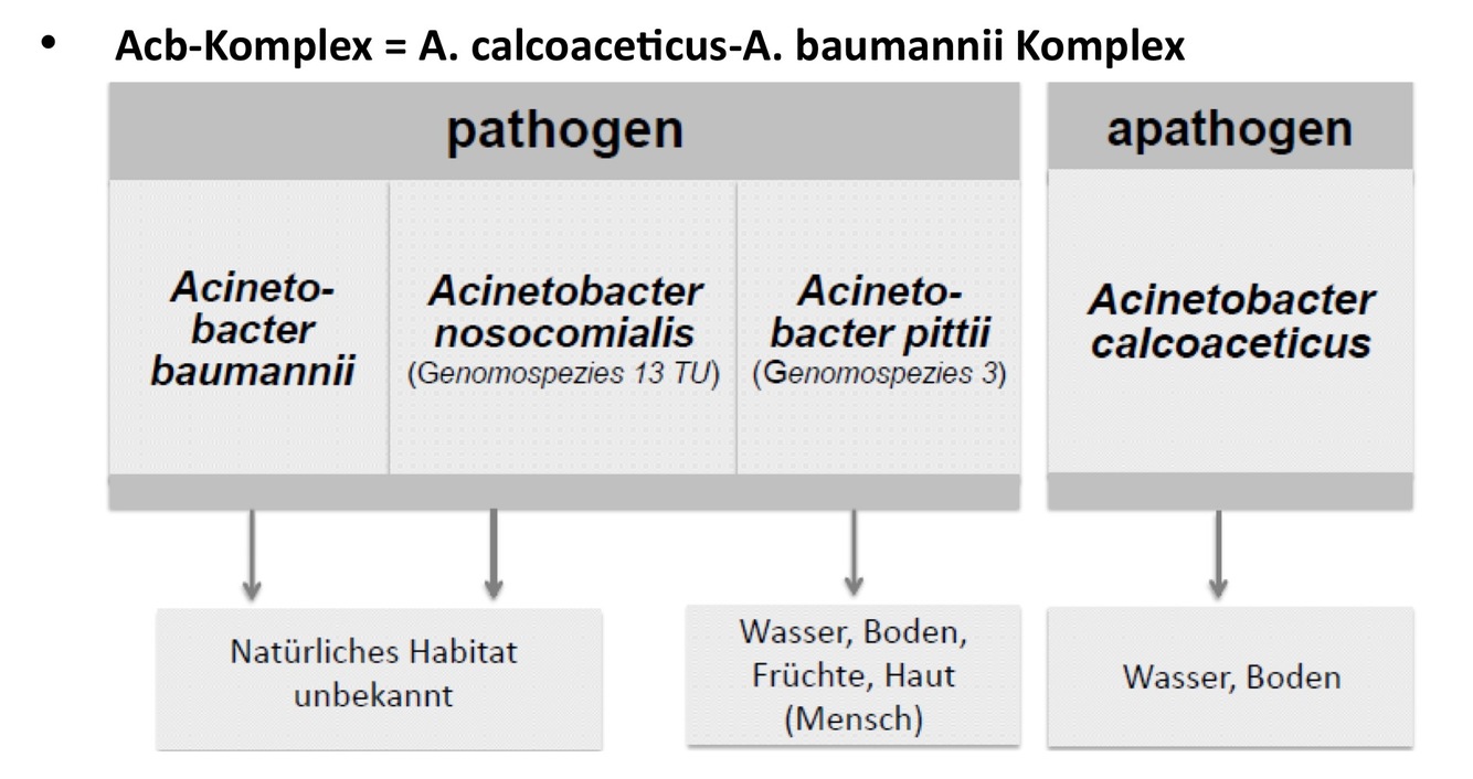 Wo kommen pathogene Acinetobacter (und welche) v.a. vor und wo apathogene (und welche) ?