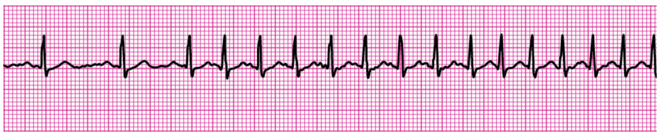 Sinus Tachycardia. To estimate the HR, divide 300 by the number of big boxes between QRS complexes.