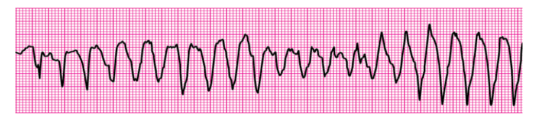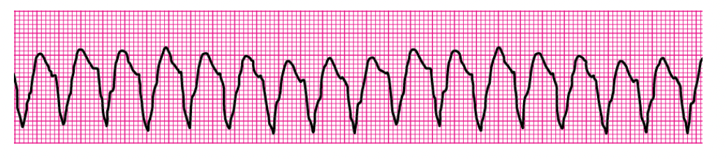 A patient has been resuscitated from cardiac arrest. During post-ROSC treatment, the patient becomes unresponsive, with the rhythm shown here. Which action is indicated next?