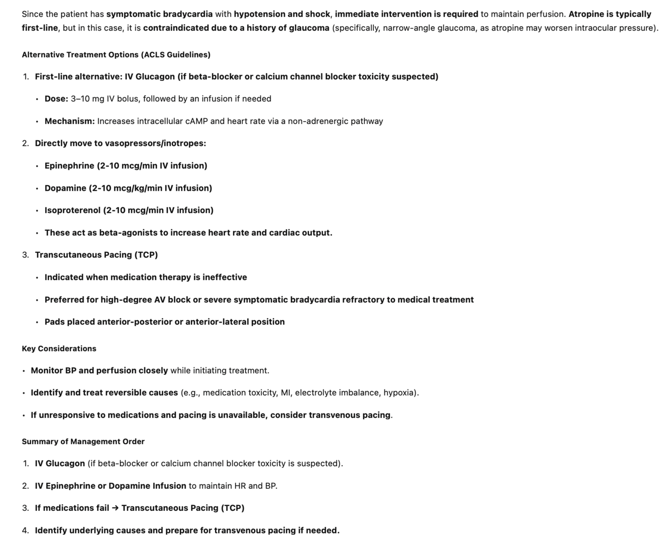 What do you do in an instance where a patient has bradycardia and signs of hypotension, shock, or diaphoresis, and they have a history of glaucoma (and you can’t give atropine), what do you do?