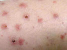 Papules: plural of papule; elevated, solid, palpable lesions that are less than 1 cm in diameter.