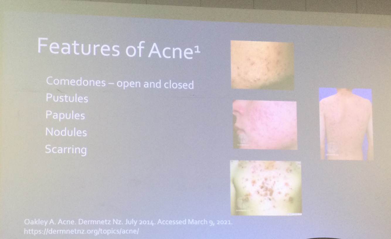 Comedomes open vs closed Pustules Paul’s Nodules scarring