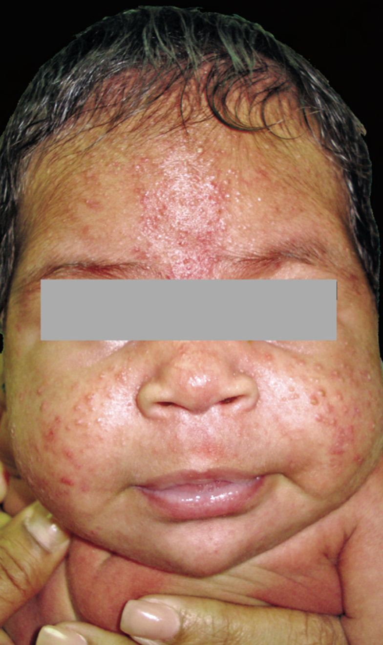 en que zonas y que lesiones se observan el acne neonatrum?