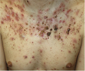 El apunte de “iso” hace referencia a que este cuadro se ha descrito como “acné fulminans inducido por isotretinoína”.