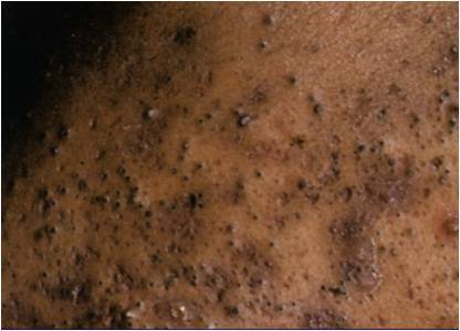 Presence of scarring or marked post inlfammtory hyperpigmentation.