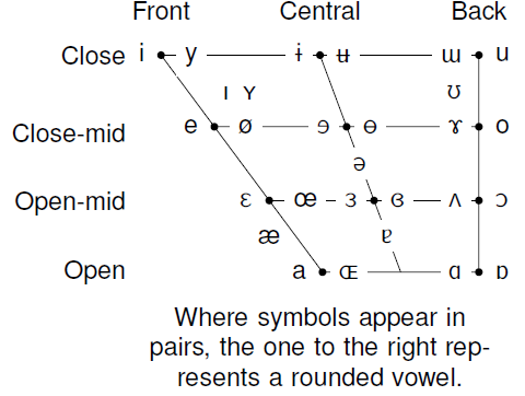 Four-sided figure with corner (point) vowels /i u A æ/ as vertices.