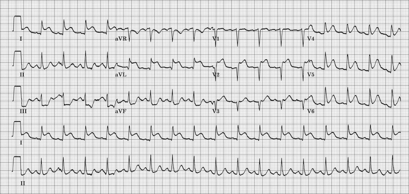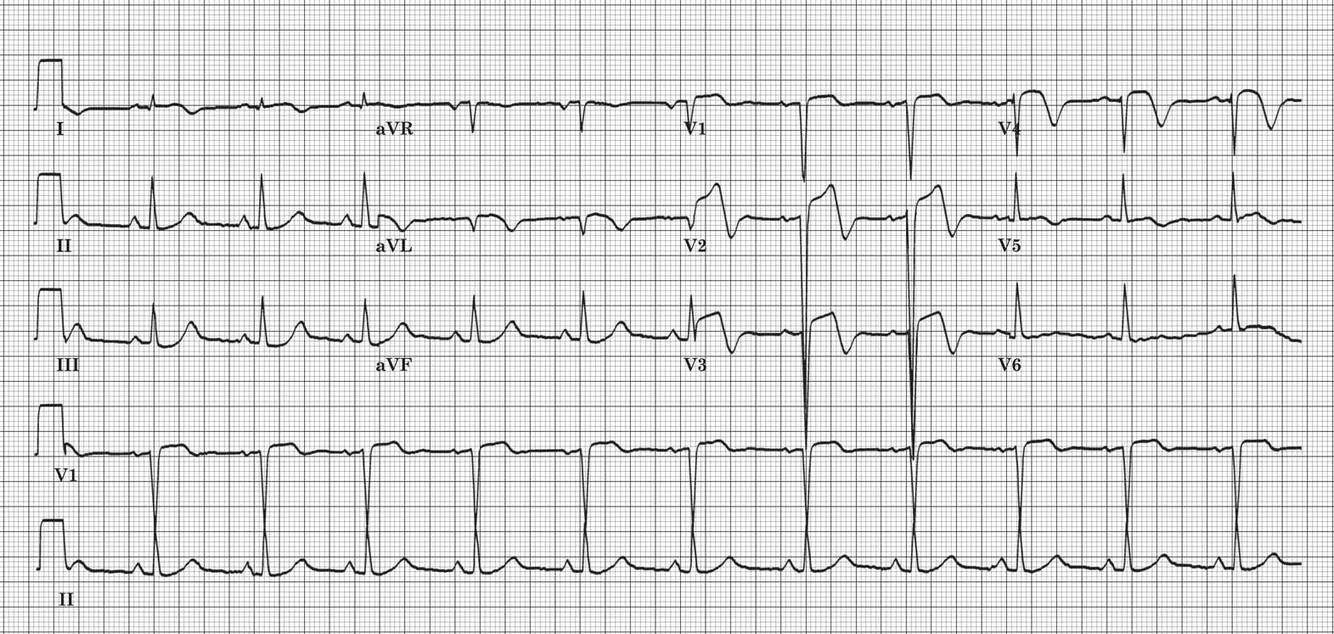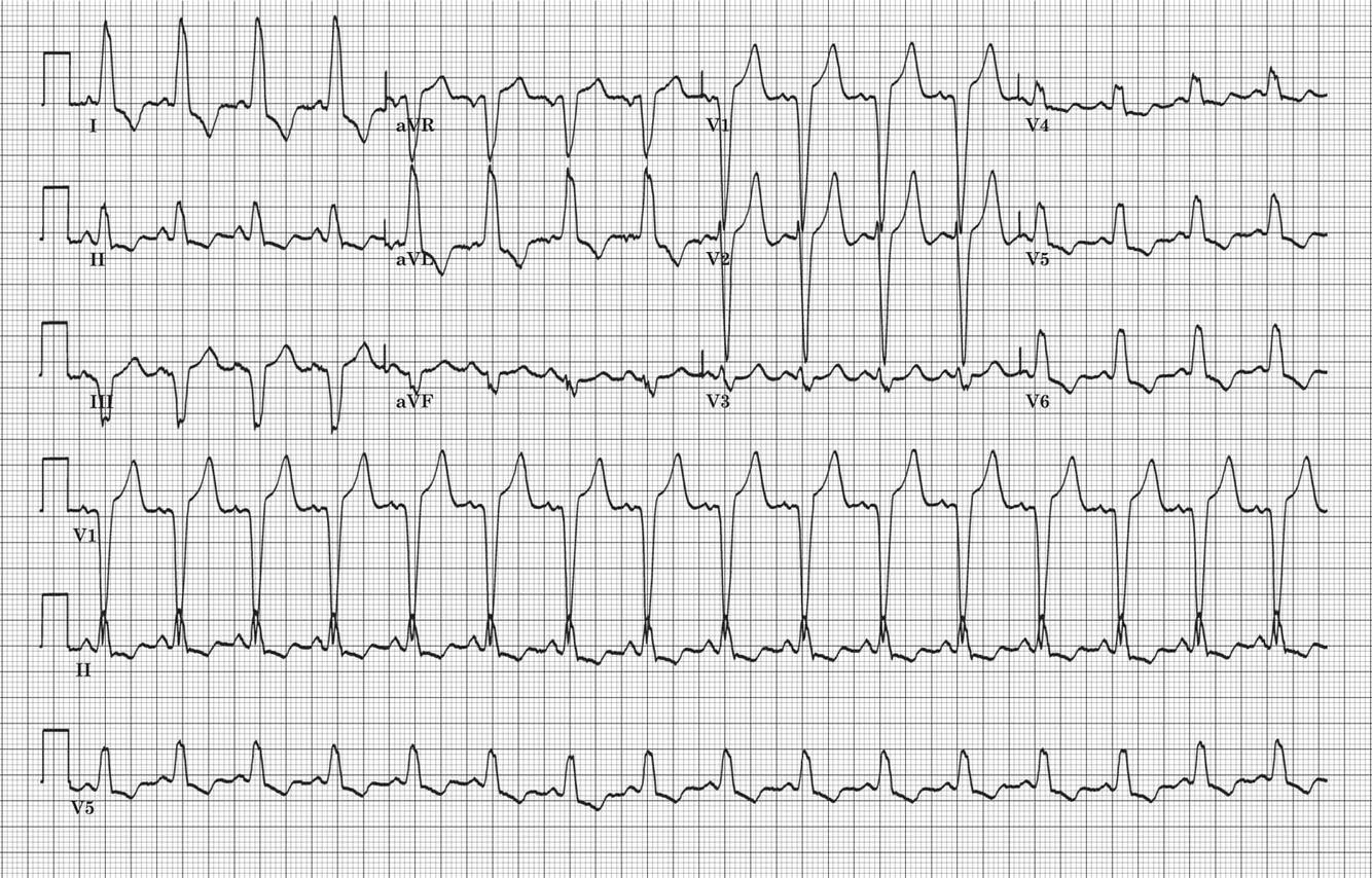 INITIAL MANAGEMENT: oxygen / IV started / rhythm strip