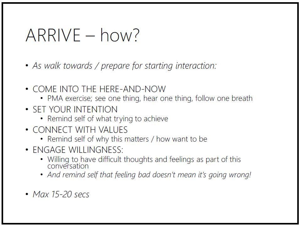 • Willing to have difficult thoughts and feelings as part of this conversation