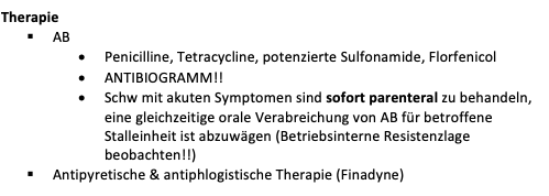 Vor allem betroffen und klinisch auffällig sind Läufer und Mastschweine, wobei alle Altersgruppen erkranken können. Schweine im Alter von 10-16 Wochen sind am empfänglichsten. Die Inkubationszeit beträgt 1 - 5 Tage, und die Letalität dieser Krankheit kann bis zu 100 % betragen.