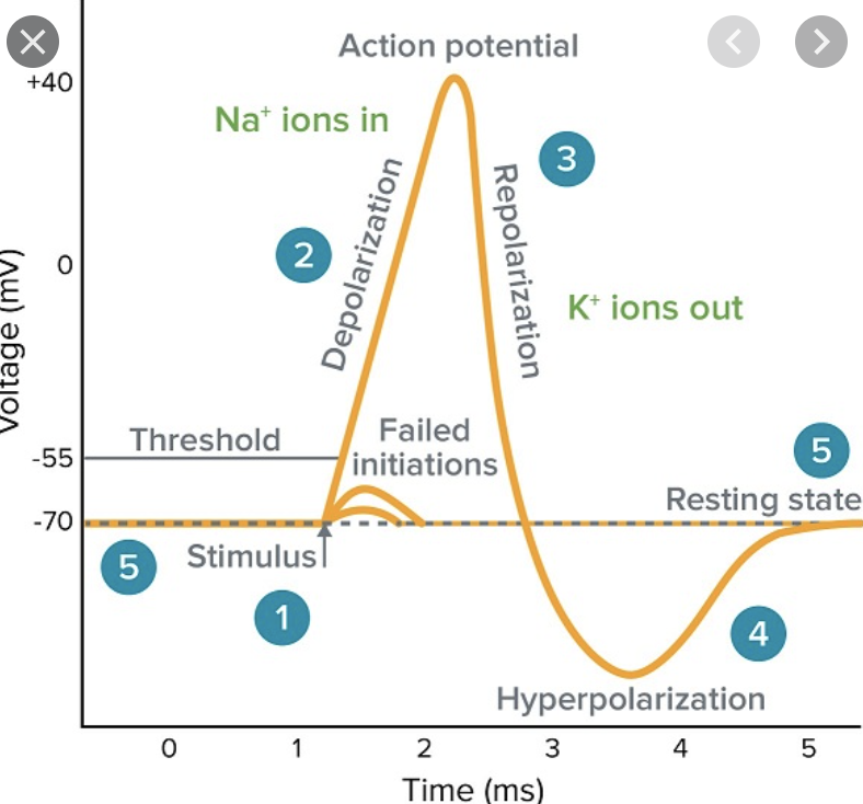 During action potential, ionic permeabilities are the opposite to that of the resting potential: