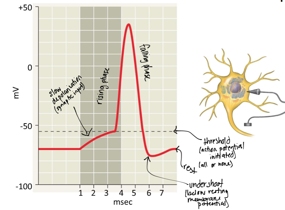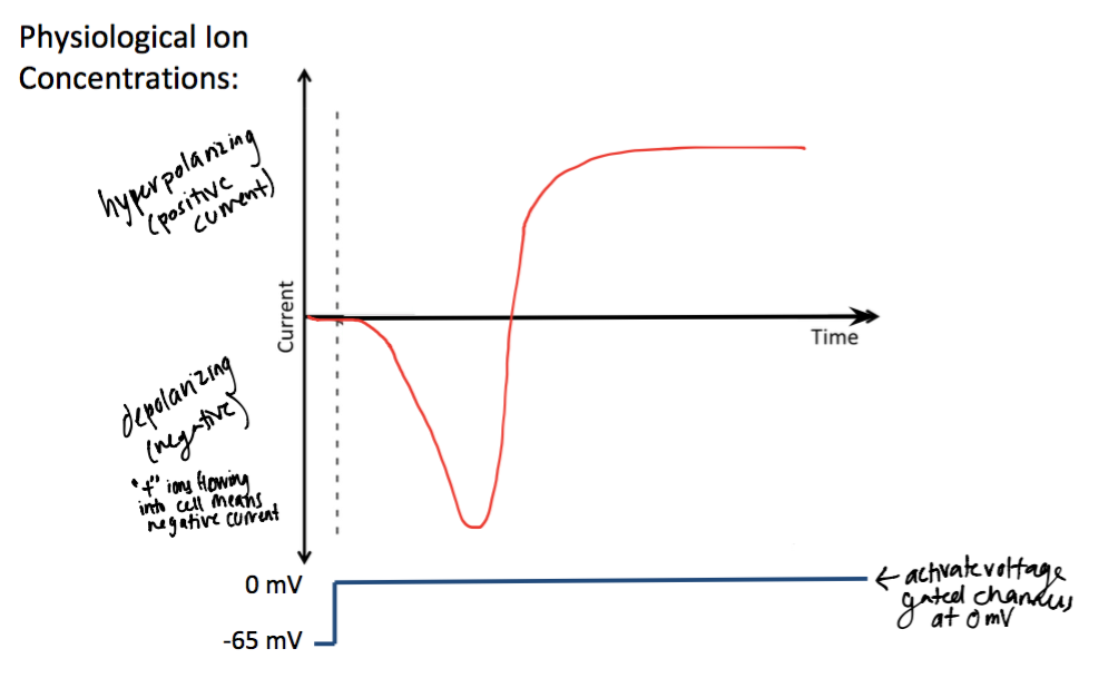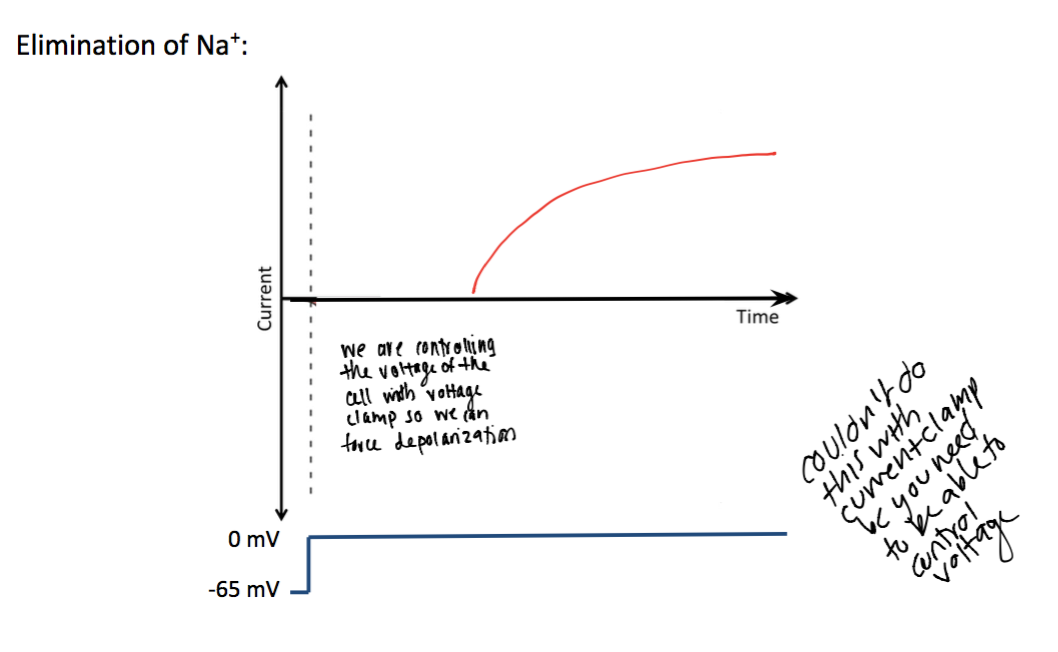 measures the membrane potential (difference in charge across the membrane; volts), controlling the amount of current that we are injecting into the cell and see how that affects voltage