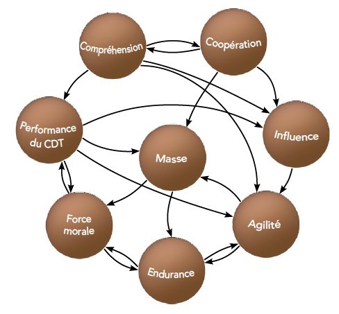 repose à la fois sur la résistance et la puissance des dispositions mentales et psychologiques d’un individu (le chef comme le subordonné) ou d’un groupe d’individus.