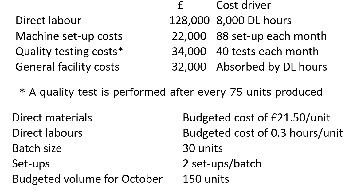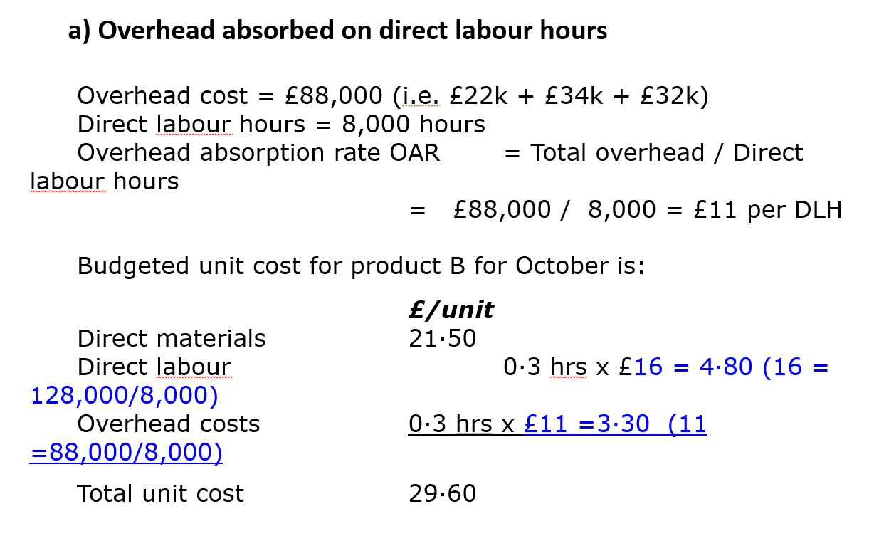 a) Calculate the budgeted unit cost of product B for October assuming that a direct labour-based absorption method was used for all overheads