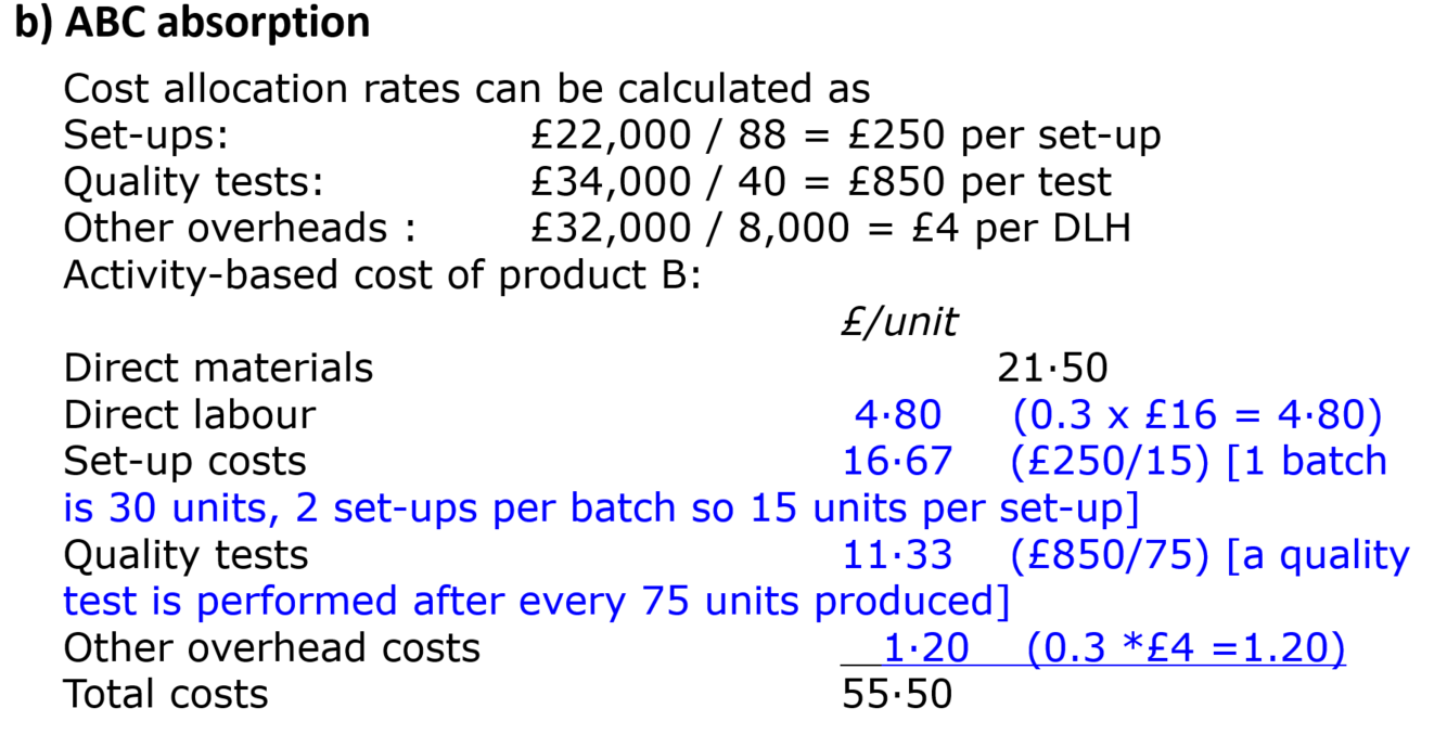 b) Calculate the budgeted unit cost of product B for October using an ABC approach