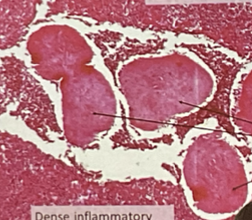 Aparición de lesiones granulomatosas y supurativas, así como absesos fistulosos