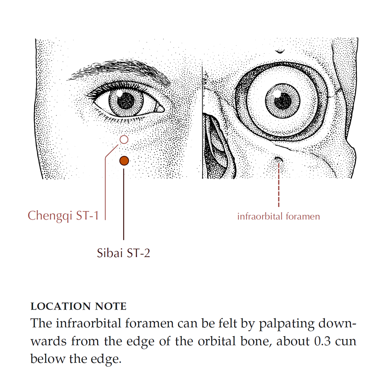 Indications: All eye diseases (e.g. conjunctivitis, keratitis, night blindness, myopia), twitching eyelid, facial paralysis, second branch trigeminal neuralgia.