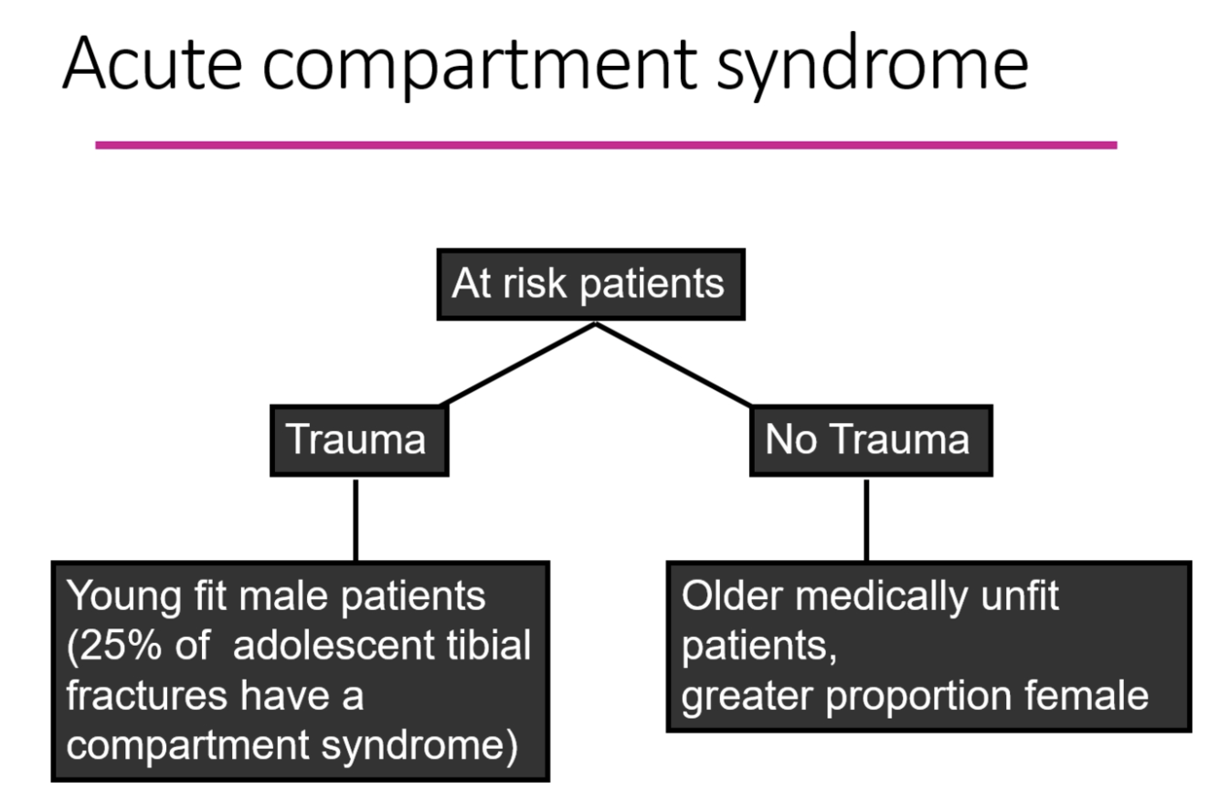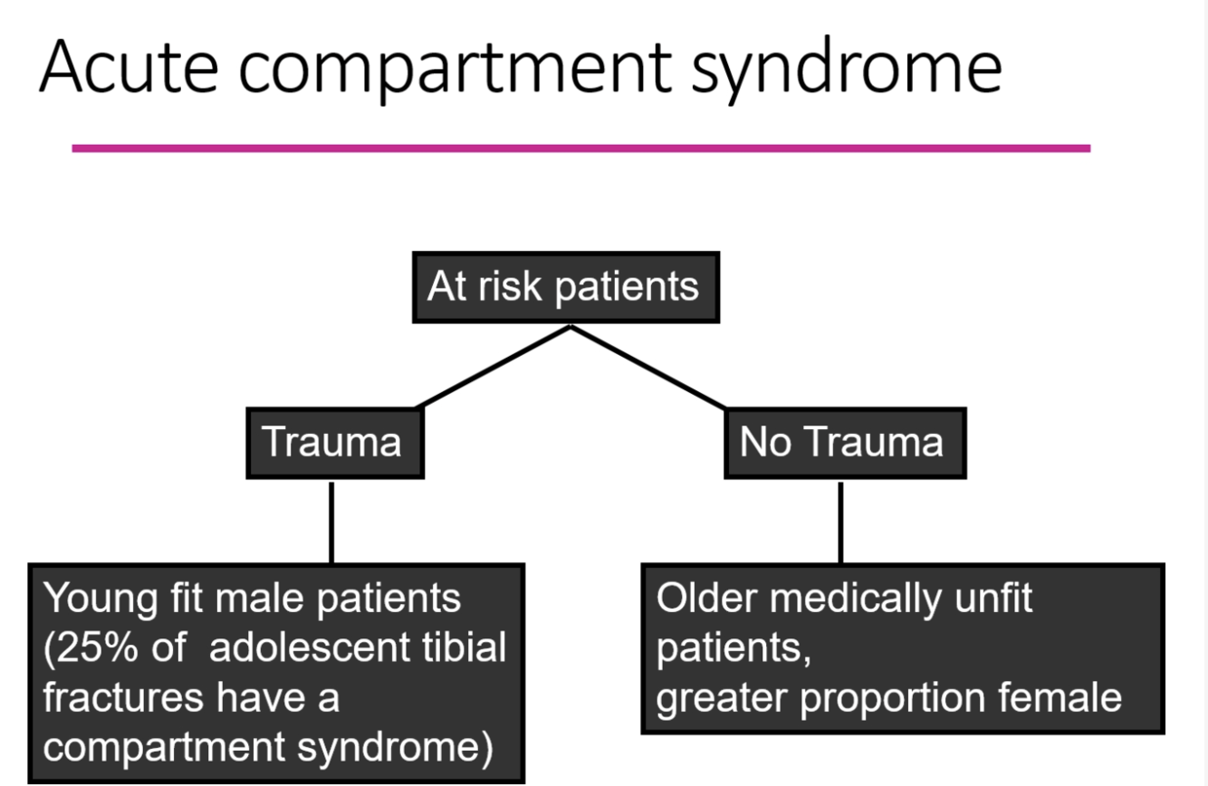 who is most likely to develop acute compartment sysndrome form trauma?