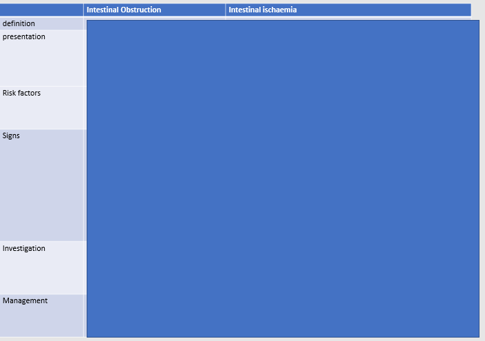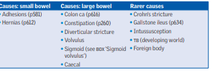 Fill out the table for causes of bowel obstruction