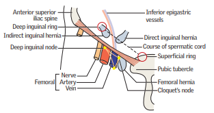 rectus abdominus, inguinal ligament and inferior epogastric artery