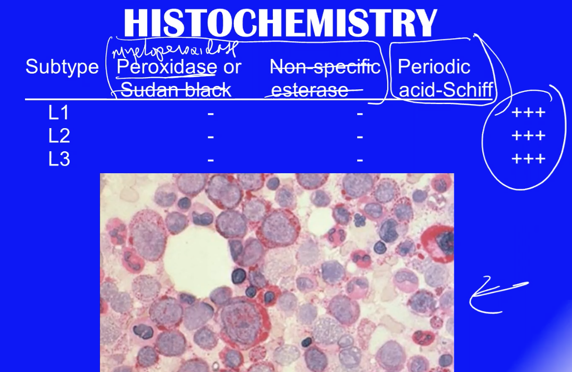 Histochemistry of the ALL subtypes differentiates which 2 cell types?