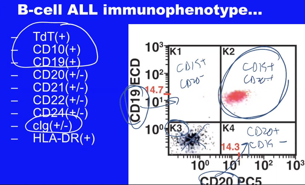 How do you distinguish from T cell or B cell ALL?