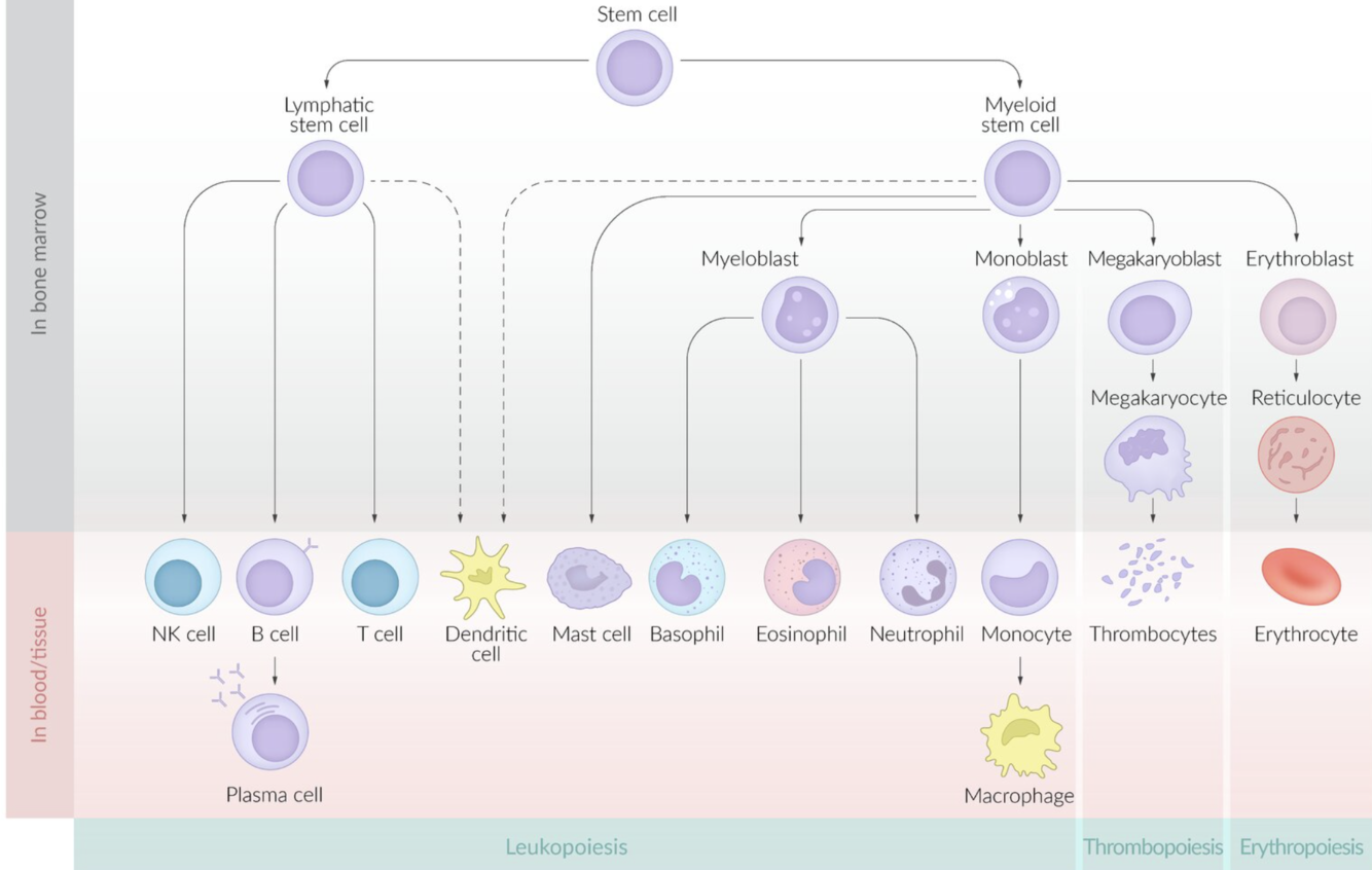 neoplastic (non-functioning) “blasts” in marrow → decreased hematopoiesis
