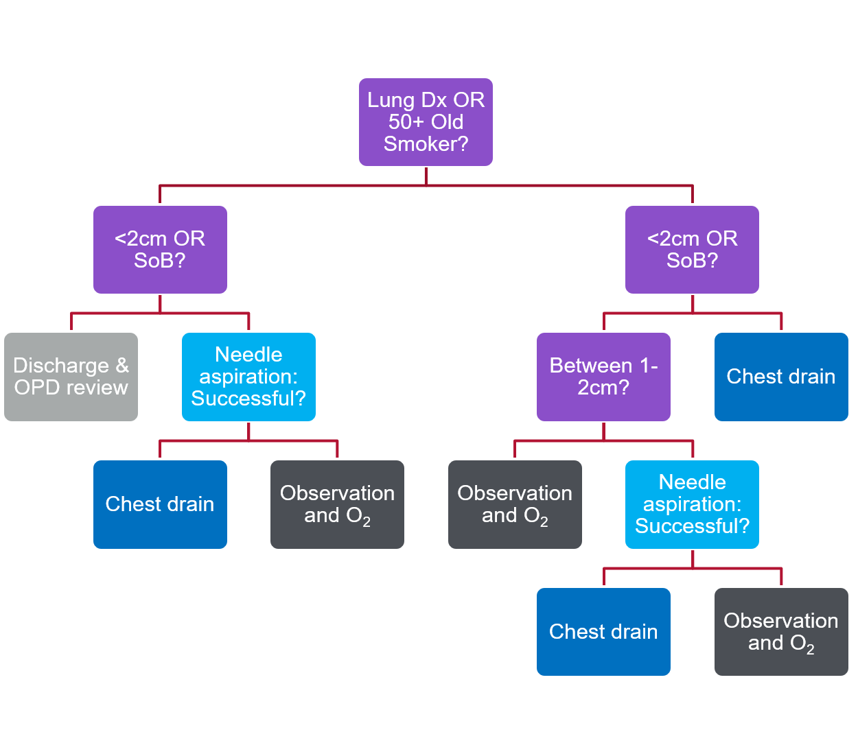 If >2cm or SOB- chest drain
