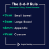 What is the normal diameters of the Small bowel / Large bowel / Appendix / Caecum ?