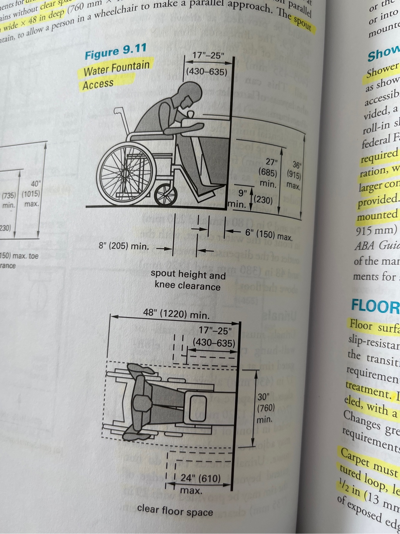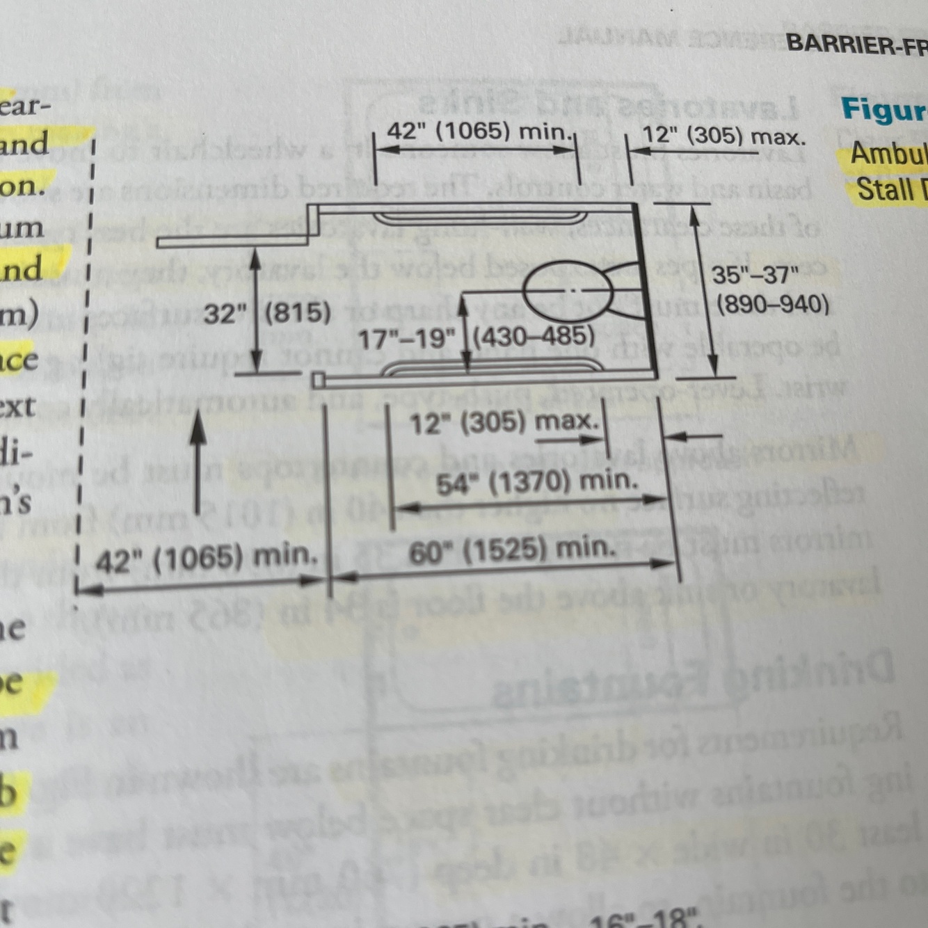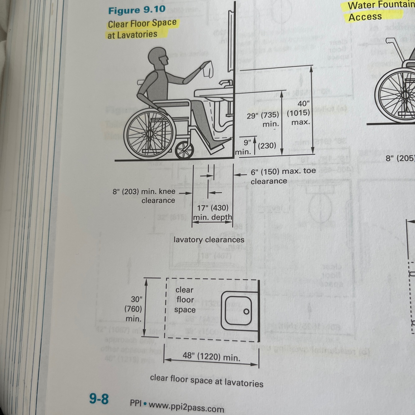 Clear floor space of lavatories