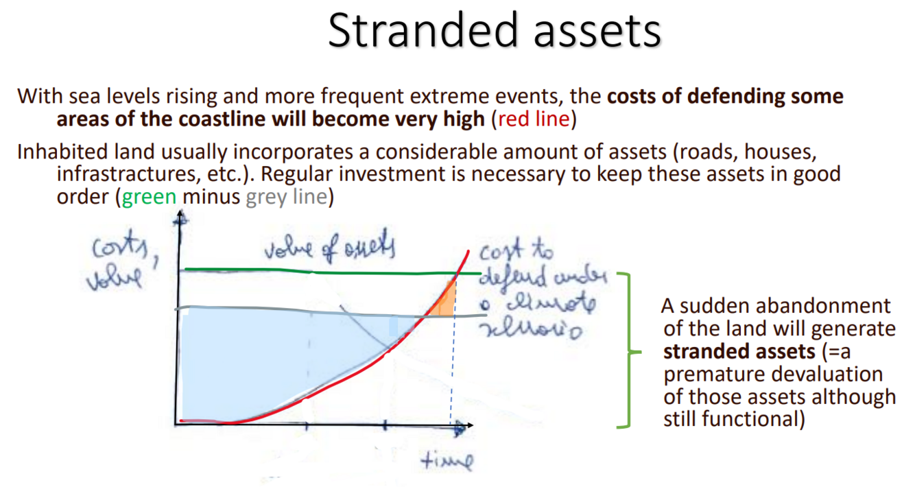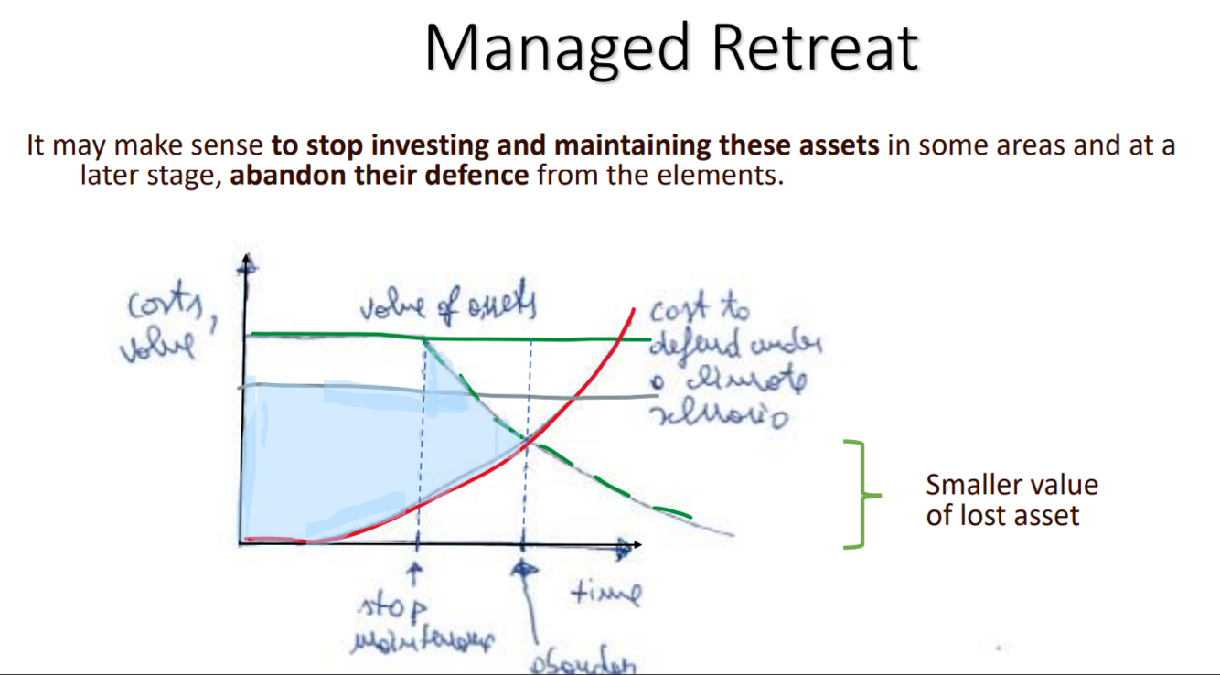 Managed retreat is thinking ahead: when you stop investing and maintaining assets, so you don’t loose as much capital, when the assets become stranded