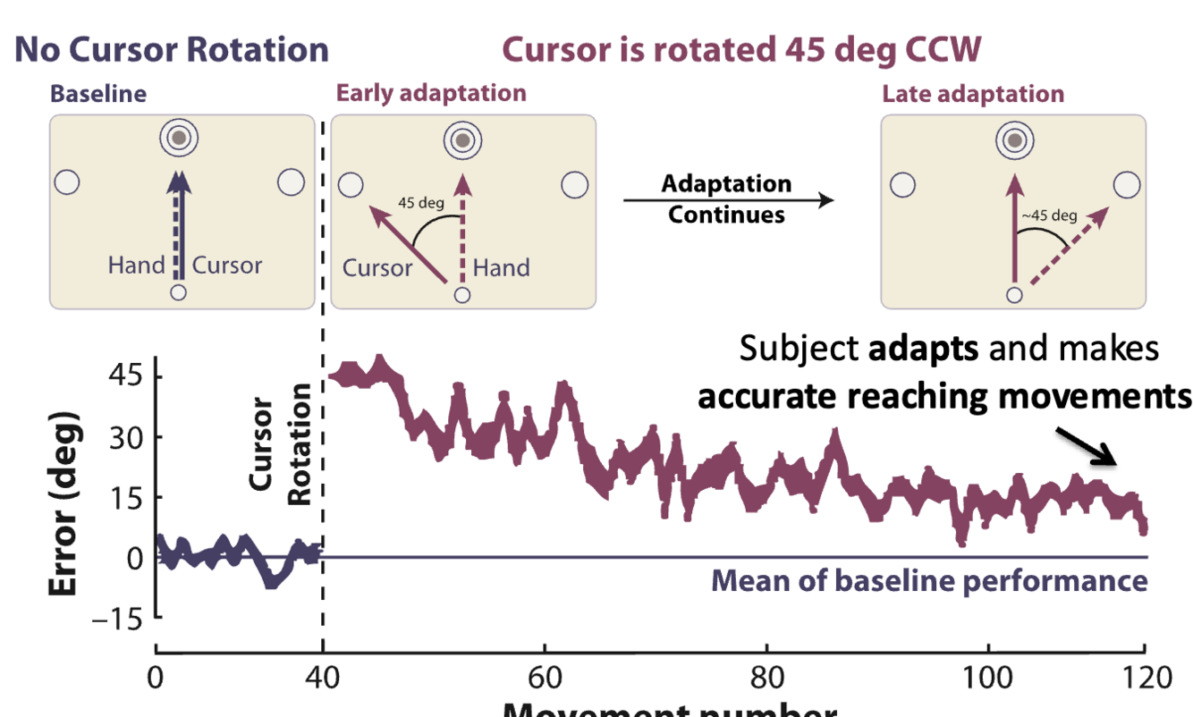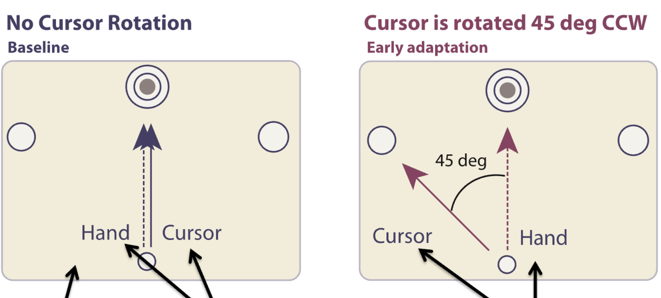 Rotation transformation means subject has to relearn/adapt mapping between cursor and hand motion