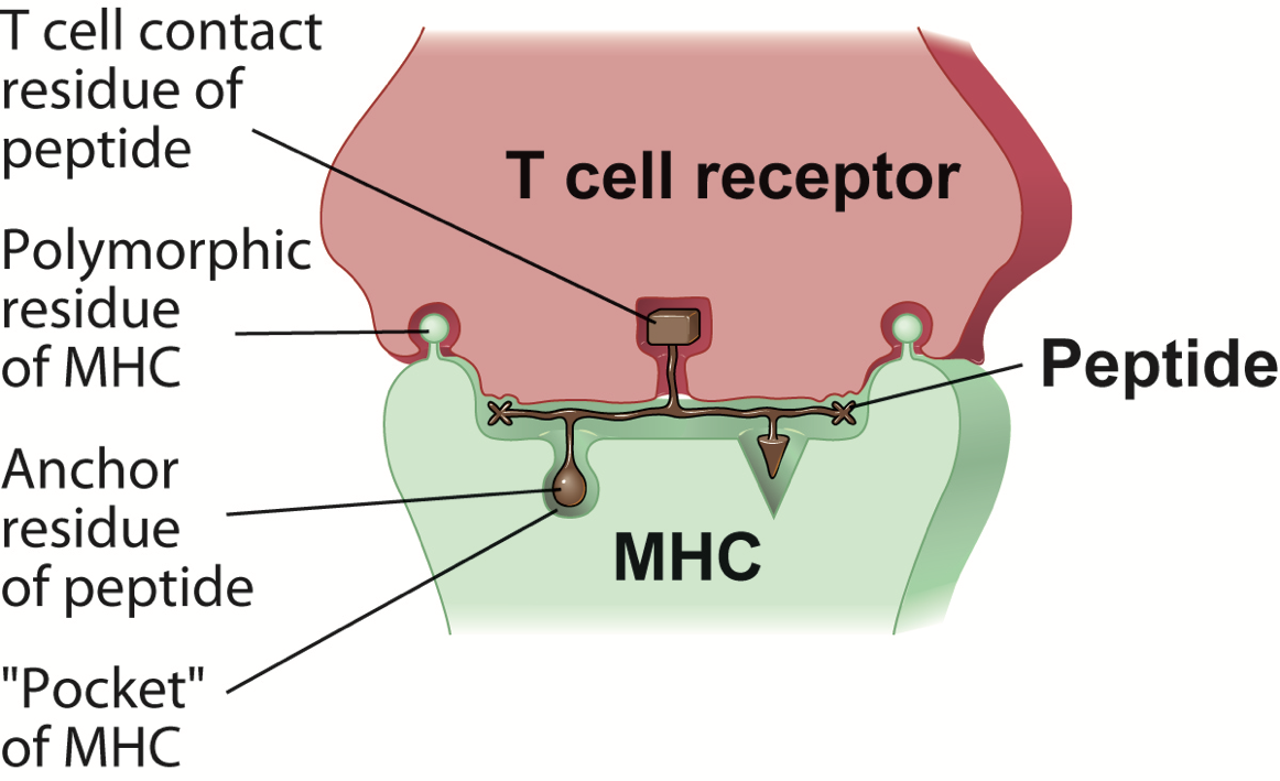 How does the T cell receptor actually bind to MHC?