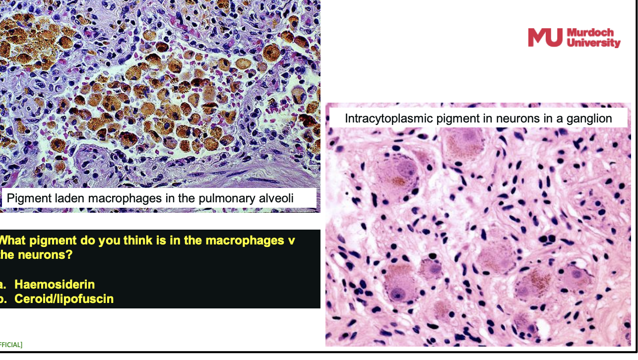 The second image is lipofuscin in neurons. Note: Neurons are not phagocytic cells so they are