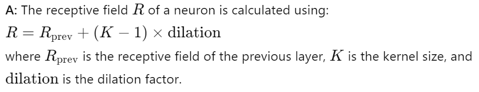 What is the formula to calculate the receptive field of a neuron in a convolutional layer?