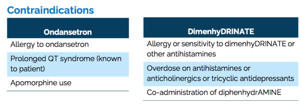 3) If a patient has received Ondansetron and has no relief of their nausea & vomiting sx after 30 min, dimenhydrinate may be conisdered.